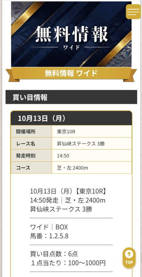 メイショウマンボが前走人気のボーダーを下げており、今回は100%にするために甘く判定していますが