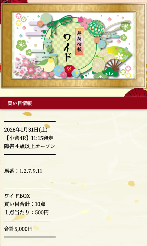 本日ラストは鉄板馬紹介で終わりたいと思います。