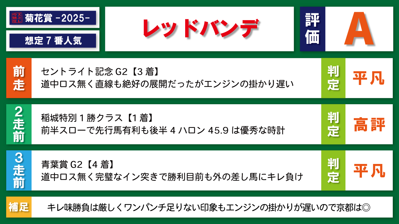 【2走前】前半スローで展開も味方しましたが、後半4ハロン46秒を切るLAPでキレ味では無く持続力勝負で高いパフォーマンスを発揮したこのレースは菊花賞にリンクしやすいかなと思います。