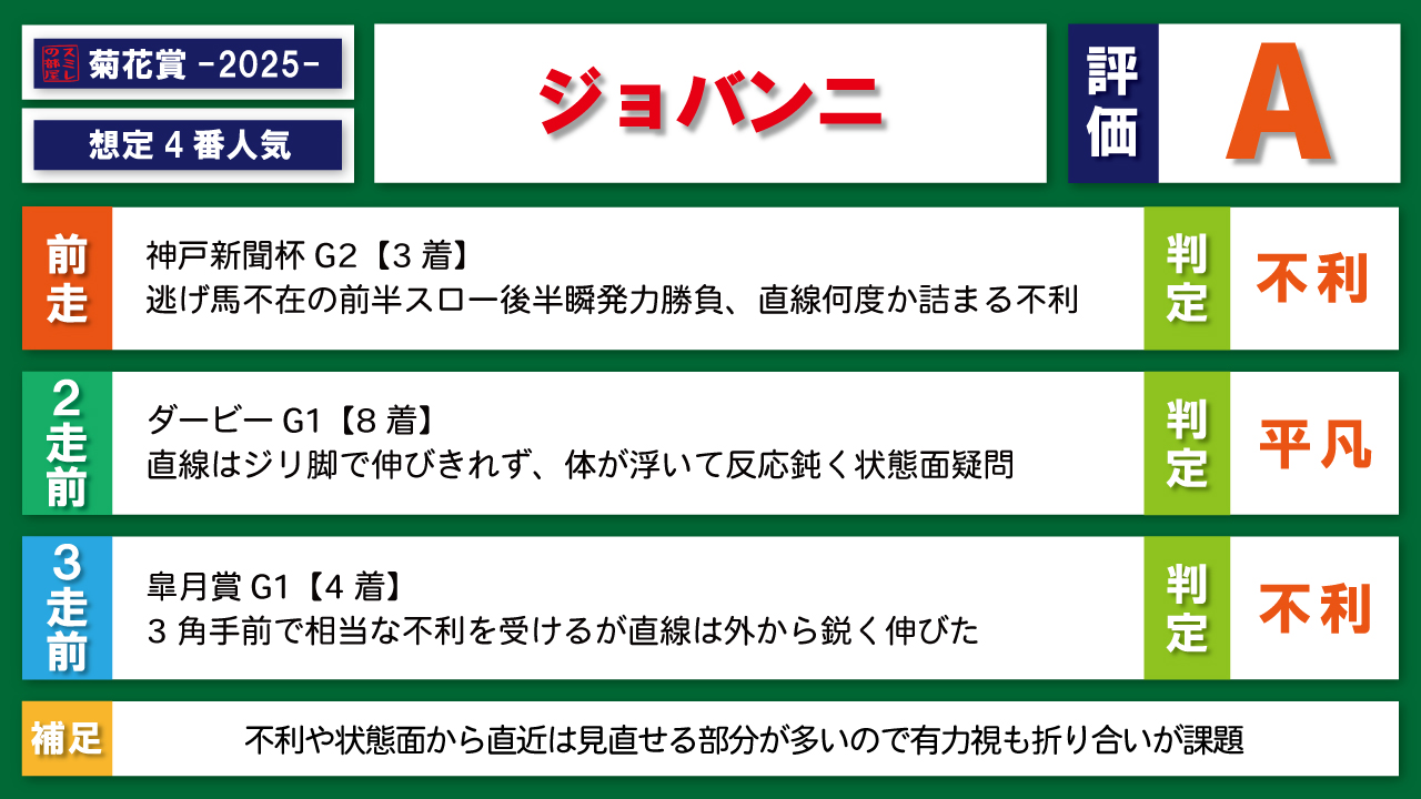 【2走前】直線伸びきれなかったのですが、陣営的には皐月賞メイチ仕上げでお釣りが無かったと、ジョッキーも調教から体が浮いているような状態でレースでも反応が無かったとありまして、シンプルに状態面で万全な状態でなかったのかなと思います。