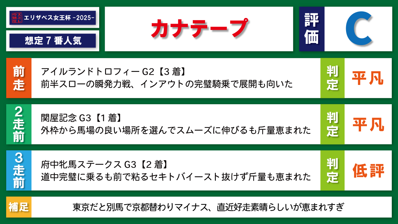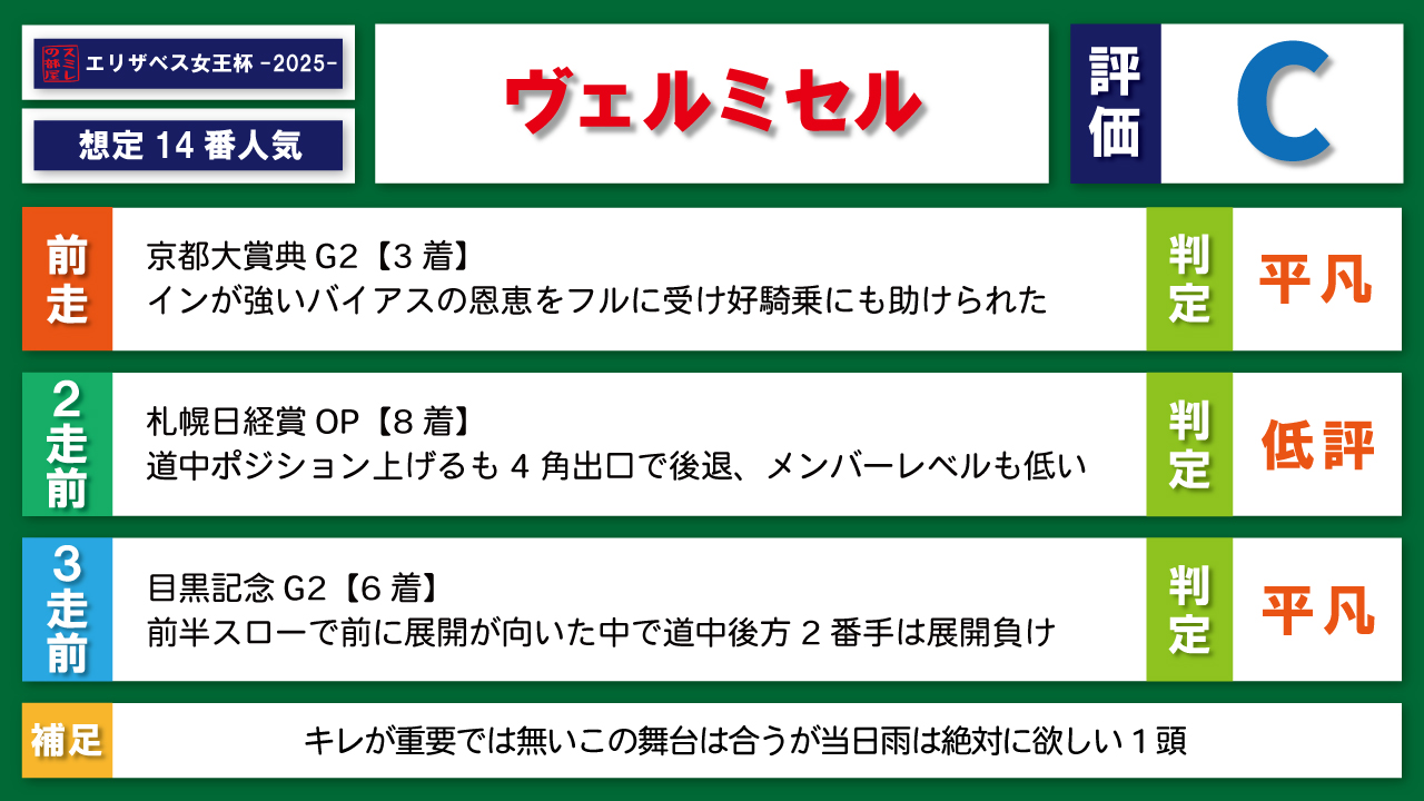 【メモ】馬場や展開の助けがあってやっと戦える状況で流石に今回のメンバーレベルはハードルが高いと思うのでC評価とさせていただきます。
