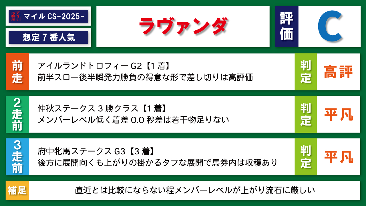 【メモ】スプリント路線よりも層の厚いマイル路線はシンプルにハードルが高いし、多頭数はマイナスなのでC評価