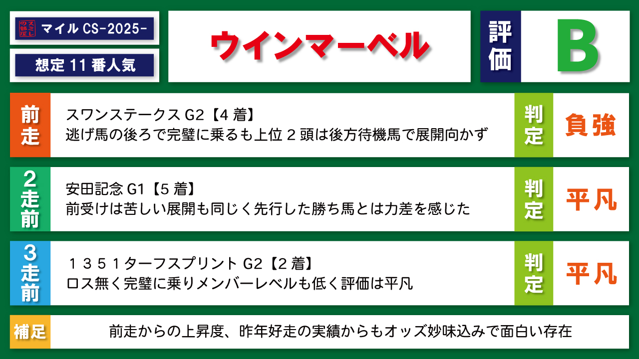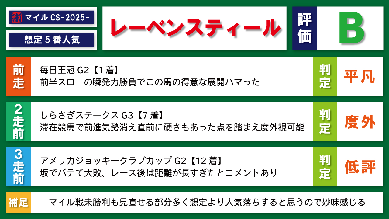 【メモ】マイル戦未勝利も理由がハッキリしている結果なので見直せる部分が多いのとマイルで追走負けは絶対に無いと思うのでB評価